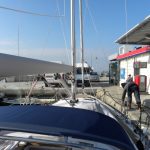 Finally on 27th March, Liberation was launched for the first time – and all was well. No leaks, engine started and was sea-trialed and cleared by Volvo. After a short sea-trial to check the generator and other machinery out and to hoist the sails for the first time, Liberation headed for the customs pontoon where Daniel checked us out of Slovenia, before leaving Ed to refuel and cross the border to Croatia alone. The check-out went smoothly and there seemed to be no problem with the export documentation in the end. The marina in Umag had been warned of Ed’s single-handed arrival and came to help with mooring – the first time with a new boat, and single handed did not make the easiest of jobs! All seemed well on the journey – with the exception of the auto-pilot not working.