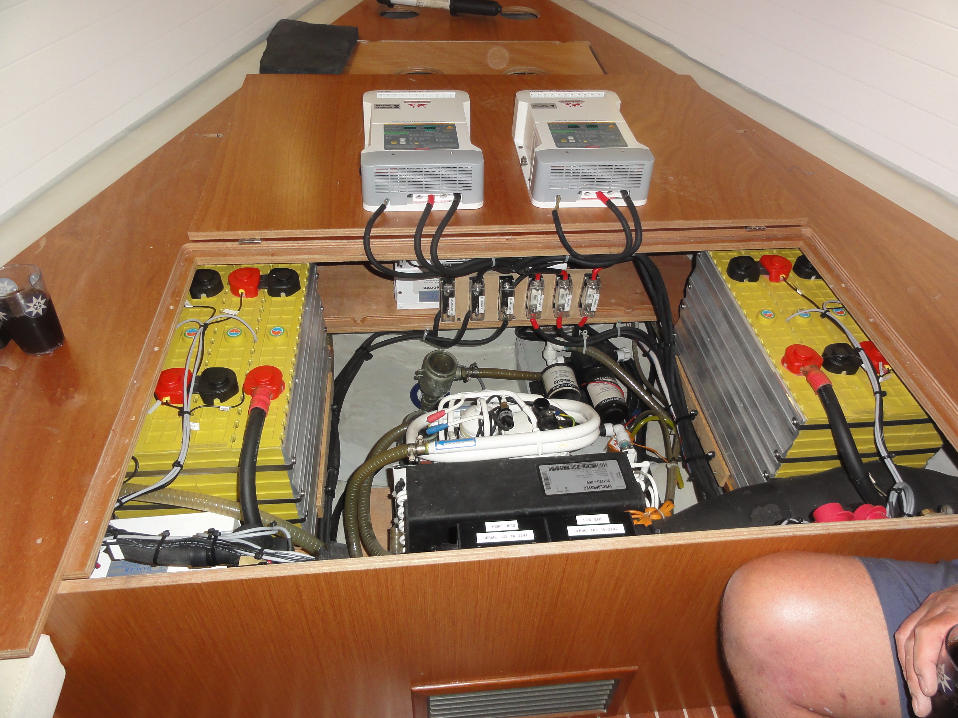 COMING SOON The original Rolls AGM battery bank is beginning to die – although it could last another season or maybe two, the power is definately waning. After a lot of discussion, we decide to install a state-of-the-art lithium battery bank. The bank is made up of 8 x 3 volt cells, clustered in banks of 4 – the system is managed by a REC battery management system (REC provide the battery systems for the Greeline electric yacht and have customised the management software for a sailing yacht application). Advantages and disadvantages of lithium? Risks and dangers Charging patterns Cost benefit analysis